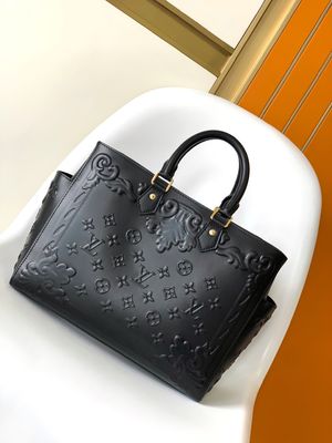 De la collection limitée d'ornements de BT, le sac Plat le sac est ouvré en cuir de vachette et gravé en refief dans le style d'un château du 18ème siècle. Le sac de poignée comporte un compartiment principal spacieux, poches multiples, deux poignées supérieures et deux longues poignées, lui permettant d'être reporté l'épaule.